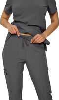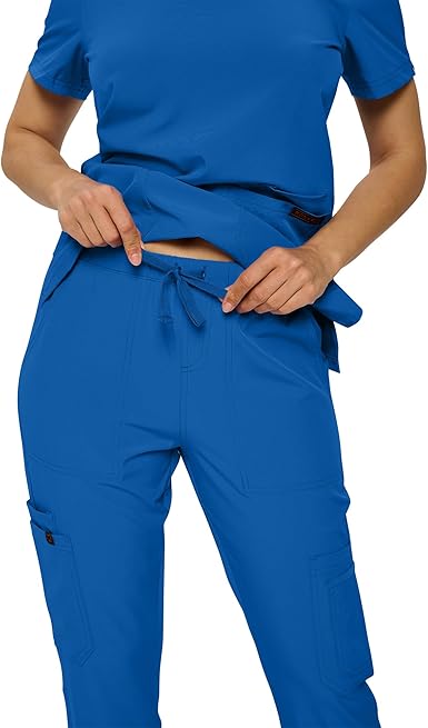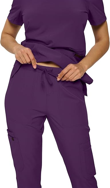 - LIGHTLY TAPERED CARGO SCRUB PANTS- 8 pockets and a drawstring fastened elastic waistband round out this versatile scrub pant.