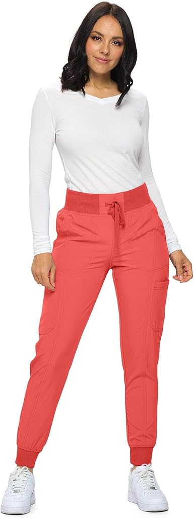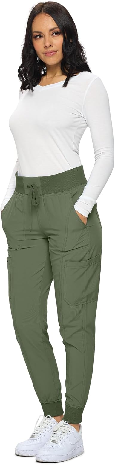 Petite Women's Jogger Scrubs Ribbed Jogger Scrub Pants for Women