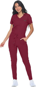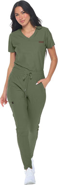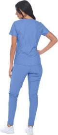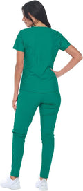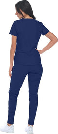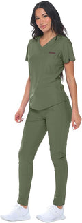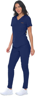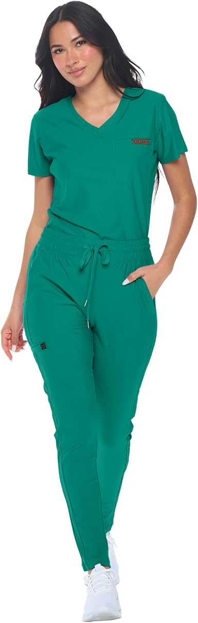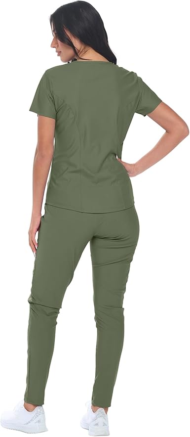 - TUCK-IN STYLE SCRUB SET- You can't beat the sleek look of this tuck-in scrub set, the fitted top and slim leg pants perfectly complement each other and will elevate you work wardrobe tremendously